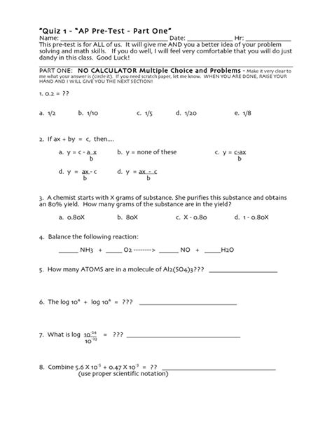 Read chemistry math pretest Doc